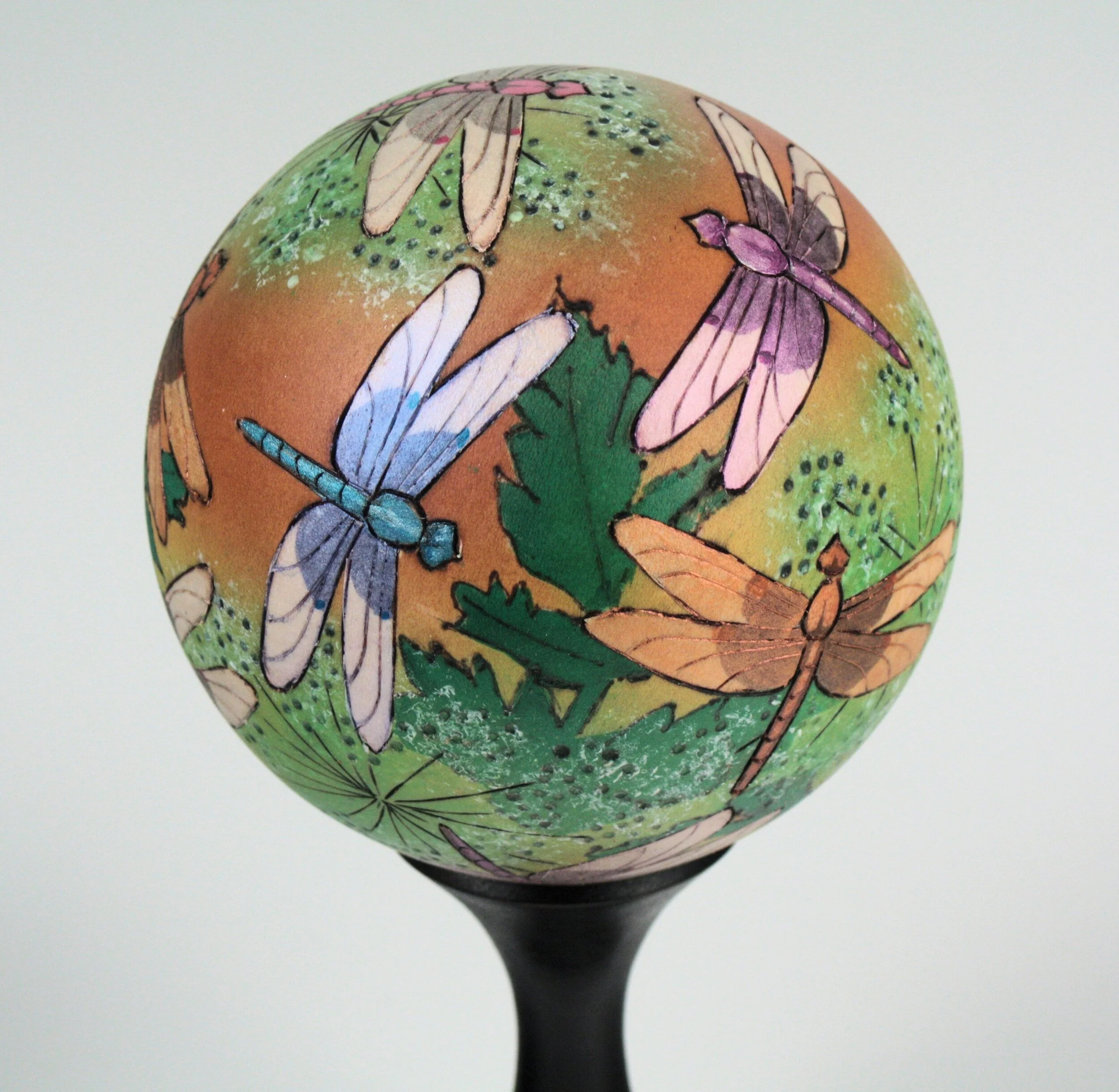 "Dragonflies & Queen Anne's Lace" - #11842 - Turned Dogwood with Pyrography & Acrylics - 3” Dia. - $360.00