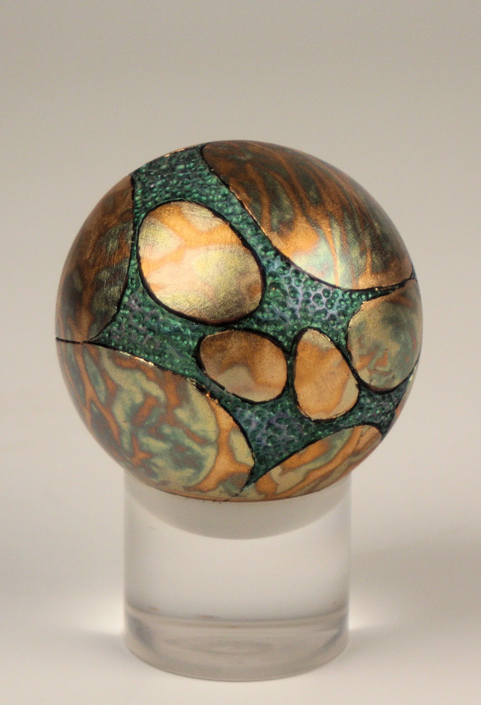 “Mars Ball” - #12300 - Turned Cherry with Variegated Metal Leaf & Acrylics - 2.5” Dia. - $160.00